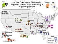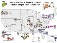 The 4th Brigade, wearing that patch, will be a new build-up here at Fort Knox, Kentucky, a light brigade that we'll build in '06. We've got a lot of maneuver training areas for Fort Knox, a great (mount ?) site. And if you take a look at the Fort Knox, the Fort Campbell corridor down here, as well the Bragg, we've aggregated our light units. Fort Campbell will not be much change, except they'll have two multifunctional aviation brigades assigned there, as well as its modular infantry. Fort Polk will have the light infantry brigade. That will be the 4th Brigade of the 10th Mountain, and that will be located at our Joint Readiness Training Center. Fort Drum, I've already talked to you about. It will have that headquarters with its three brigades. Bragg, in '06, will end up with four brigades, plus the 18th Airborne Corps. And then, of course, Fort Stewart and Fort Benning, when the 3rd Infantry Division is relieved later this year by the 4th ID, they'll come back to Fort Stewart and Fort Benning, and then they will refinish the job they started in terms of modularity. As you know, they went over there about 90 percent in the modular formation, and then when they come back, we'll put them in a full modular force.