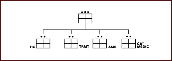 h. Battalion Medical Platoon. The battalion medical platoon (Figure 1-8) provides health service support. The treatment squad's two vehicles enable them to split operations with the battalion surgeon in charge of one team and the physician's assistant in charge of the other. The medics in the combat medic section are normally attached to the rifle platoon.