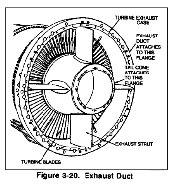 The compressor manifold diverts the flow of air from the which, which is an integral part of the manifold, into the combustion chambers. The manifold will have one outlet port for each chamber so that the air is evenly divided. A compressor outlet elbow is bolted to each of the outlet ports. These air outlets are constructed in the form of ducts and are known by a variety of names including "air outlet ducts", "outlet elbows," and "combustion chamber inlet ducts." These outlet ducts perform a very important part of the diffusion process. They change the airflow direction from radial to axial. The diffusion process is completed after the turn. To help the elbows perform this function efficiently, turning vanes (cascade vanes) are sometimes fitted inside the elbows. The vanes reduce air pressure losses by presenting a smooth, turning surface.