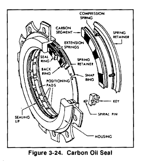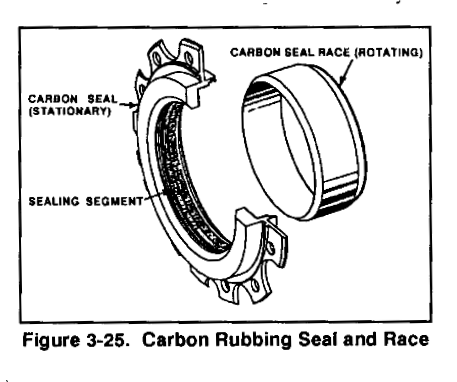 Teflon, nylon, carbon, rubber, Bakelite, and a host of plastic materials are used in the gas turbine engine mainly as sealing and insulation materials. For example, nylon and Teflon are used to insulate and protect the shielded electrical wiring located on the outside of the engine. Teflon is also used on the J-79 F4 Phantom engine for the sealing the variable-stator-vane actuators. Carbon is used largely inside the engine in the form of carbon rubbing seals. Some of these "face" carbon rubbing seals must be flat to within two helium light bands, or approximately 23 millionths of an inch. Rubber and rubberized fabric materials makeup the sealing edge of the fire seal which divides the hot and cold sections of the engine when mounted in the nacelle. Synthetic rubber is used extensively throughout the engine in the form of O-rings or other shaped seals.