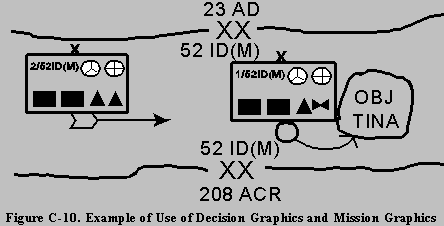 Figure C-10 below shows that the 1st Brigade, 52d Infantry Division (Mechanized), is task-organized with two mechanized infantry battalions, an armor (tank) battalion, and an attack helicopter battalion. It has no deficiencies. Its task is to seize objective Tina. The 2d Brigade, 52d Infantry Division (Mechanized), is task-organized with two mechanized infantry battalions and two armor (tank) battalions. It has no deficiencies. Its task is to follow and support the first brigade.