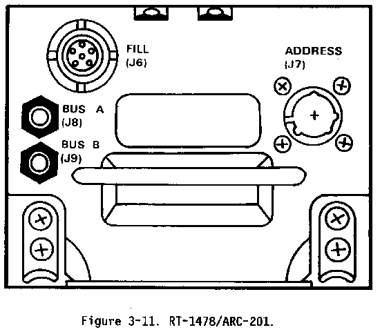 (c) The RT-1478/ARC-201 (Figure 3-11) is equipped with a DRA for 600 and 1,200 baud data rates. The DRA processes the input signal in the same format as the ground radio in the AD2 mode of operation for use with TACFIRE data terminals. Therefore, it will only communicate with other SINCGARS radios and not with AN/VRC-12 series radios connected to TACFIRE terminals. The RT-1478 is a low density piece of equipment and is the only airborne version that accepts data.