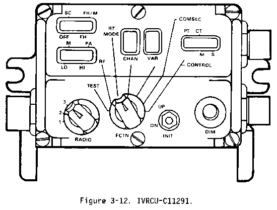 (1) The IVRCU C-11291 (Figure 3-12) can control up to three separate radio sets in armored vehicles. The IVRCU can be used with either the ICOM or non-ICOM radio. It controls all functions of the three radios from a single station. The monitors can also be connected in parallel so two different operators, such as the vehicle commander and driver, can control the radios from their respective positions in the vehicle. The radio function switch must be set in the remote (REM) operating position for the external control monitor to function correctly. Like the radio, the monitor has BIT functions displayed through the monitor control panel.