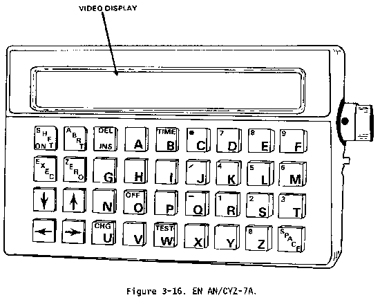 (2) The electronic notebook (EN) AN/CYZ-7A (Figure 3-16) is a small hand-held data memory device similar to a small calculator. It can be loaded with complete or partial SOI and the FH variables for operation of SINCGARS. It provides the operator with an automated search method to locate call signs and frequencies for use in any number of networks. The EN replaces the paper SOI for use in the field.