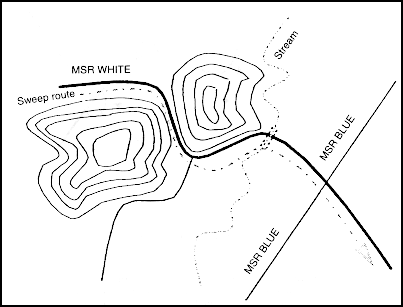 A deliberate sweep (Figure 11-7) is very thorough and includes a complete sweep of the entire road (shoulders, culverts, ditches, and bridges). It is the most time-consuming sweep operation and relies on electronic (primary) and visual (secondary) detection systems.