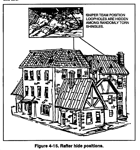 (4) Urban areas. In urban areas, the sniper team's camouflage should be a blended color (shades of gray usually work best). Textured camouflage is not as important in these environments.
