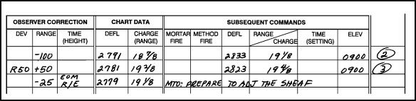 | NOTE: | If the FPF is within 200 meters of friendly troops, the FO should call for HE delay in adjustment (preferred method) and use the creeping method of adjustment. |