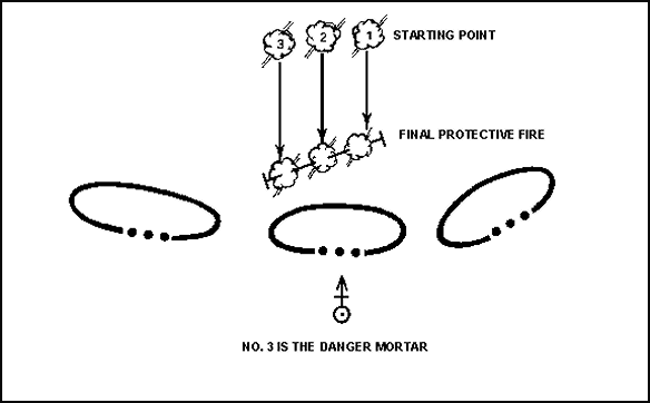 (b) Once the danger mortar has been determined, that danger mortar is fired and adjusted to the FPF line.