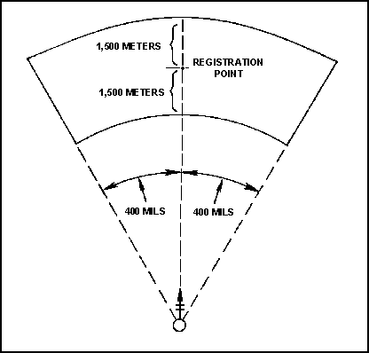(4) To determine the firing data, align the mortar position with the RP. Determine the chart data and apply the range correction for altitude between the mortar and target. During the registration, only the range correction for altitude is used. Give the firing command to the base mortar. Three to six rounds will be fired at 10-second to 20-second intervals. The FO uses this interval to give himself time to determine the azimuth readings to each round. If the azimuth for one or more rounds is determined to be 50 or more mils different, then another round may be fired for each erratic round. Six rounds are needed for the most accurate MPI registration, but as few as three rounds give correction data.
