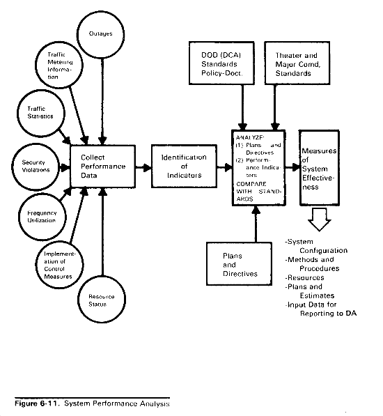 System performance analysis (fig 6-11) is the process of collecting performance data, identifying effectiveness indicators, and evaluating the indicators to determine communications system effectiveness in meeting required standards. The primary objective of the analysis is to determine what actions, if any, can be taken to improve system performance.
