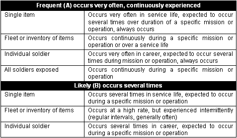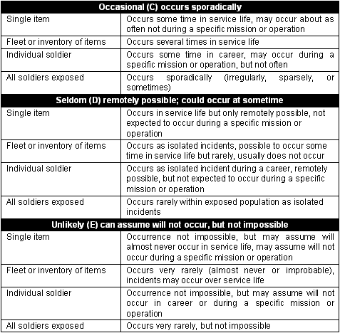 Figure 2-11. Hazard probability 2-70. Using the defined degrees of probability and severity, an individual can determine the overall environmental-related risk level from the intersection of the two in the risk assessment matrix shown in Figure 2-12.