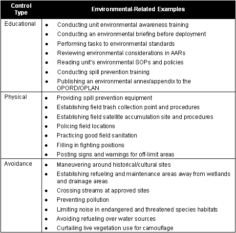 2-73. Figure 2-13 provides environmental-related control examples. The checklist in Appendix E provides additional means for addressing and reducing environmental risk through the use of effective controls.