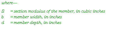 E-10. Section modulous is the property that measures the beam's ability to resist bending. Although expressed in units of volume, section modulus functions as an index of the member's size, shape, and orientation with respect to the load. For example, of the two timber orientations shown in Figure E-6 the one to the left results in less deflection. This orientation is stronger and distributes the stress better because the compressive and tensile stresses generated by the moment in the beam are farther away from each other. Consequently, the section modulus of the stringer to the left is greater than the section modulus of the stringerto the right.