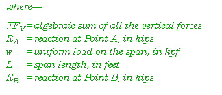 E-32. Figure E-14 shows a diagram for a uniformly loaded beam. A uniform load includes the weights of the beam, bridge deck, and snow or ice loads that are applied evenly along the length of a beam. Tracked vehicles also distribute loads along the length of the span. Uniformly distributed loads are expressed in an amount of loading per foot of span (in kips).