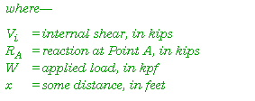- To find the value for internal shear, substitute varying values for distance in the following equation: