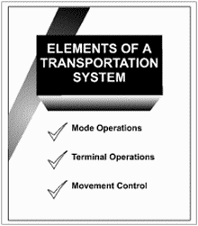 | 2-2. ELEMENTS OF A TRANSPORTATION SYSTEM. The transportation system is comprised of three distinct elements (see Figure 2-1). These elements are mode operations (highway, rail, water, and air), terminal operations, and movement control. Of these elements, movement control is the most critical component of the system. A movement control system must coordinate the transportation modes, terminals, Services, commands, and host nations during deployment, sustainment, and redeployment. | ![]() Figure 2-1. Elements of a Transportation System |