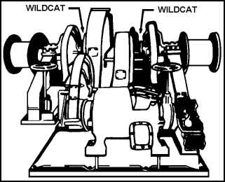 21-35. If the windlass is not used frequently, it should be lubricated before each operation in accordance with the applicable TM. Rotation of the windlass by power during lubrication will distribute the lubricant evenly. The locking mechanism can be disengaged and the chain held by engaging the wildcat brake. |