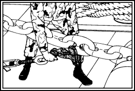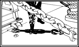 21-26. The devil's claw is put on a link of the anchor chain, and the turnbuckle is set up, acting as a permanent stopper. |