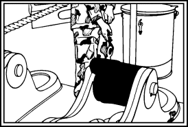 Note: As the anchor chain is coming in, crew members should be stationed at the hawsepipe with a fire hose. The chain should be thoroughly washed down and freed of all mud, silt, and debris. |