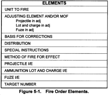 If not standardized by unit SOP, the elements in Figure 5-1 will be addressed in the fire order.