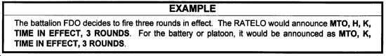- The battalion FDC will announce the time (for example, AT MY MARK THE TIME WILL BE 0908).