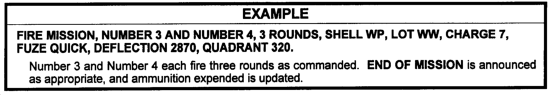 a. WARNING ORDER. A warning order is issued to indicate the type of mission (AF or FFE) to be fired (not standardized).
