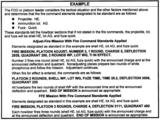 NOTE: The remaining elements of the battalion fire order are similar to the battery or platoon fire order except for standards. |