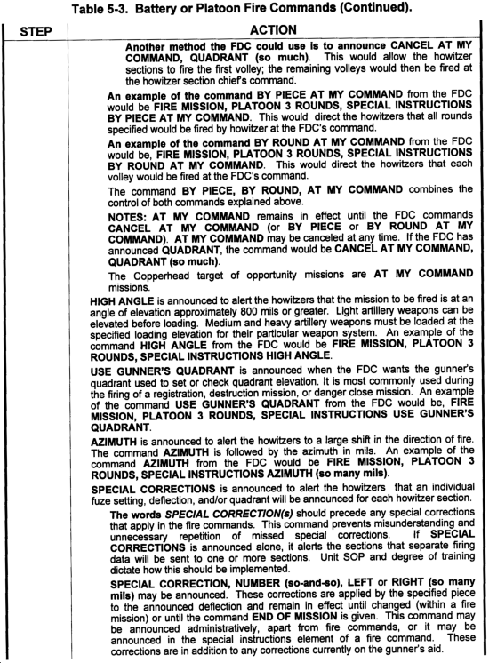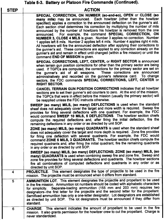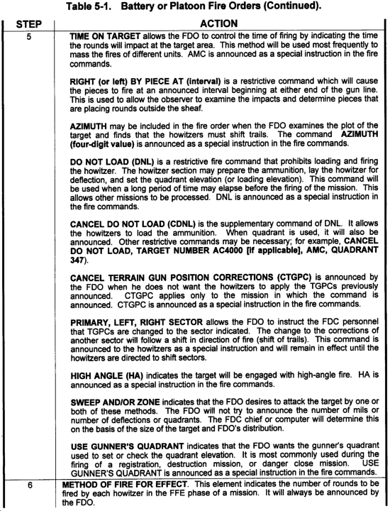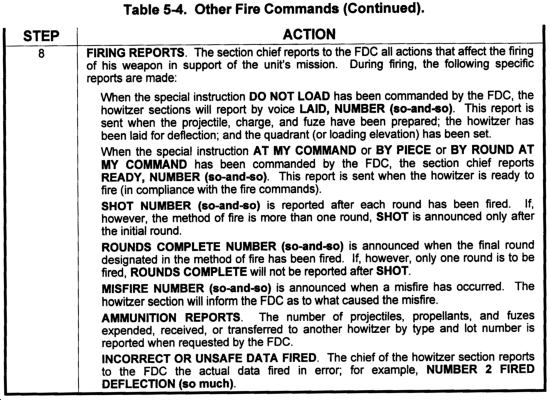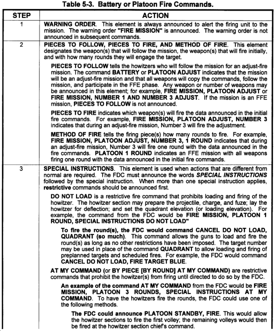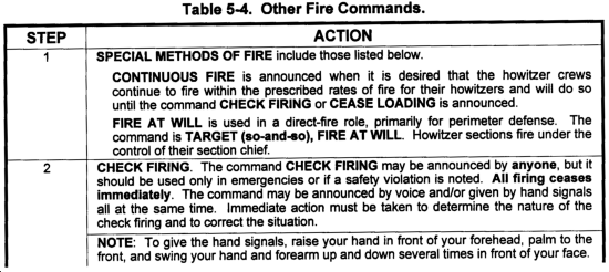 The procedures and sequence for announcing fire commands are in Table 5-3; all other fire commands are in Table 5-4.