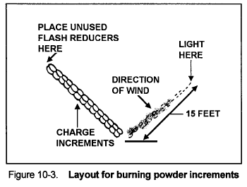 (4) Arrange the row so that the powder will burn into the wind (Figure 10-3).