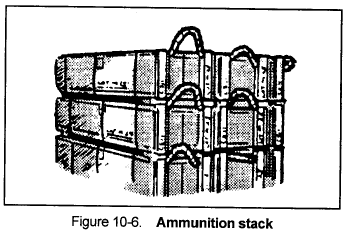 (1) Stack ammunition by type, lot number, and weight zone (Figure 10-6).