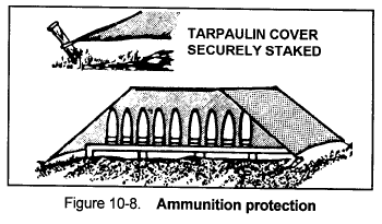 (3) Keep the ammunition dry and out of direct sunlight by storing it in a vehicle or covering it with a tarpaulin. Be sure adequate ventilation is provided (Figure 10-8).