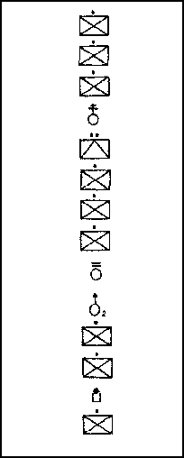 (5) Company file. This formation is formed by arranging platoon and section files behind the lead element. This is the easiest formation to control. It allows rapid movement in close/restricted terrain or limited visibility and enhances control and concealment. It is also the least secure formation and hardest from which to maneuver. Figure 3-6 depicts one example of a company file; it shows all units in file.
