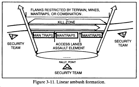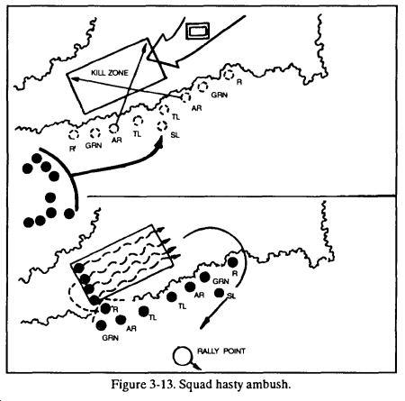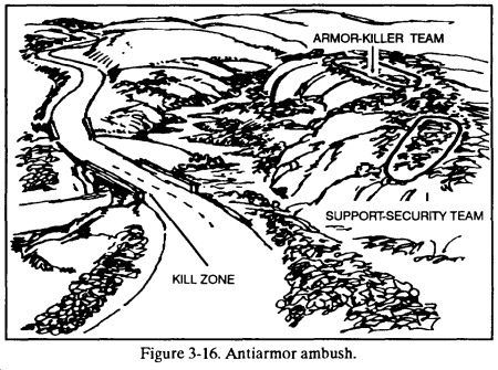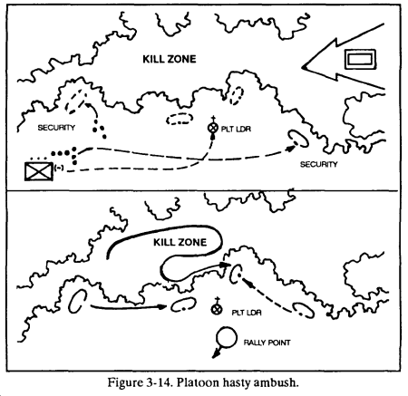g. Because of the speed with which other armored forces can reinforce the enemy in the ambush site, the leader should plan to keep the engagement short, and the withdrawal quick. The platoon will not clear through the kill zone as in other ambushes.
