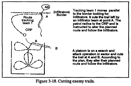 (2) Employing common countertracking techniques. Once the enemy realizes he is being followed, he will try to evade or attack the tracking team (Figure 3-20).