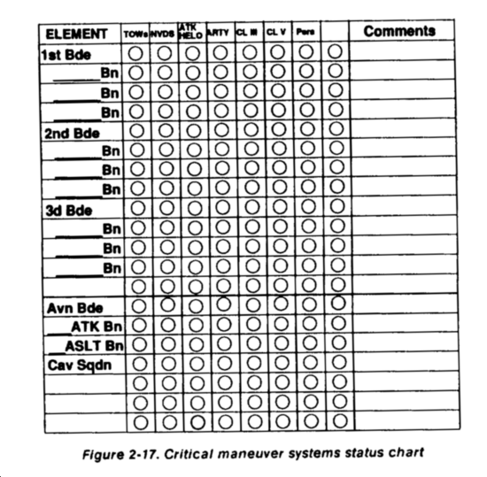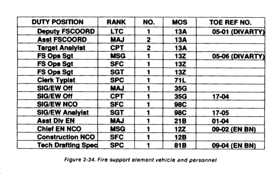 - Maintains information and status on all fire support assets accessible by and responsive to the division rear CP.
