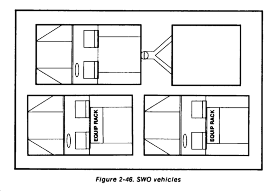 The vehicles used for the G1 support cell are organic to the G1 or supporting organizations. Each vehicle has communications and computer equipment mounted inside it. Each vehicle is configured and wired to support operations through remoting without having to download all equipment each time the element is set up. Figure 2-60 depicts one configuration for setting up the G1 support element with organic vehicles. Some sections are more fully manned than others. The G1 should distribute labor equitably throughout the cell to ensure each element's critical functions are performed to support continuous operations.