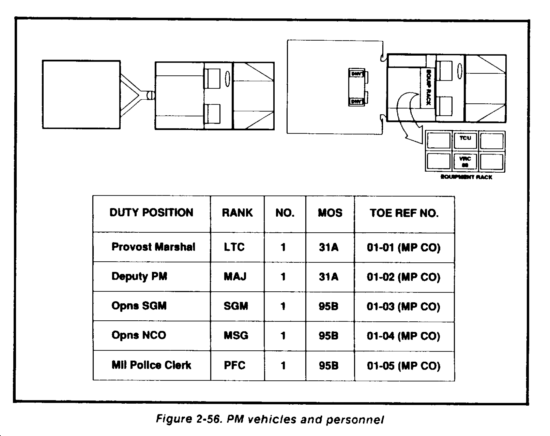Also working under the supervision and coordination of the rear operations cell is the PM element, The PM establishes a separate working area near the rear CP. The PM comprises SICPS tents and organic vehicles with radios and electronic equipment hardwired for quick connect and disconnect, remote operations, and rapid displacement (Figure 2-56). From this location, the PM supports the division battle and rear operations. However, the PM must maintain the flexibility to send representatives to the main and TAC CPs during critical times for planning and coordination subject to METT-T.