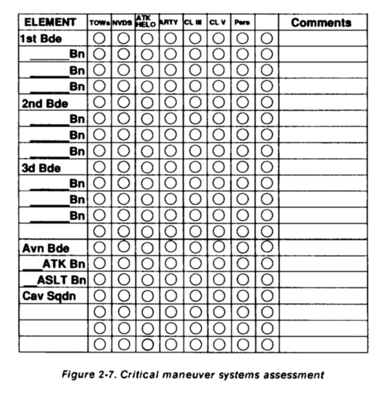 The alternate CP for the TAC CP should be able to perform critical functions of the TAC CP G3, G2, and fire support element (FSE), in that priority. Normally, the first choice for a TAC CP alternate is the command group vehicles. This element knows the situation and should be able to pick up the close operation without losing momentum and information transfer. It also possesses the organic communications capability and personnel to perform critical G3, G2, and FSE functions. Surviving personnel and vehicles, if any, rally at the command group and continue operations until a new TAC CP is organized. Once the new TAC is functional, information and operations transition from the command group to the TAC CP. If the command group is unavailable, then the next alternative for an adequate alternate TAC CP may be the division cavalry squadron CP. It possesses the staff, facilities, and communications to perform designated TAC CP functions.