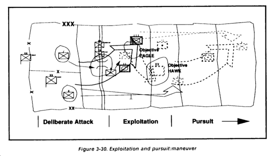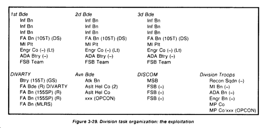 Contingency plans for exploitation and pursuit operations are sequels in planning for the deliberate attack. There is no change in task organization for the exploitation from the deliberate attack (see Figure 3-29).