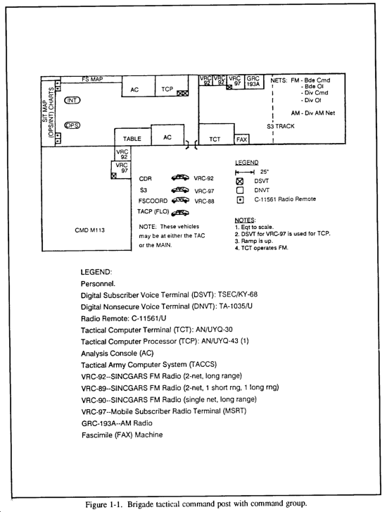 The brigade TAC CP has the following functions (see Figure 1-1 for legend of terms, equipment and a diagram of the facility):