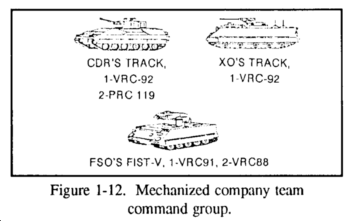 Figures 1-12 and 1-13 illustrate the vehicles used by mechanized and armor company team command groups.