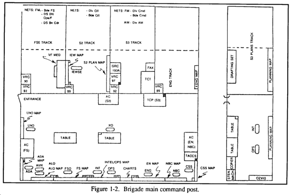 The brigade main CP has the following functions (see Figures 1-2, 1-3, and 1-4 for diagrams of the facility):