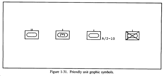 Posted friendly information should include all subordinate units, CPs, trains, higher headquarters CPs, and flank unit locations. (See examples of friendly unit graphic symbols in Figure 1-31.)