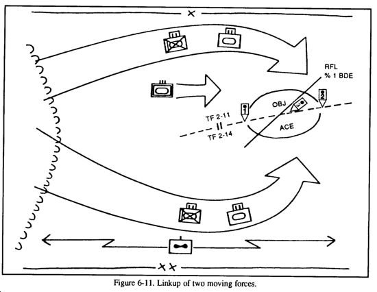 The company combat trains will remain in place until the operation is complete, at which time they will either move to the ORP or be joined by the company elsewhere. Damaged vehicles should be towed by like vehicles; casualties will be treated and stabilized by combat lifesavers until they can be transferred to the medics and evacuated via ambulance. Following the linkup, CSS operations will occur as in any tactical operation.
