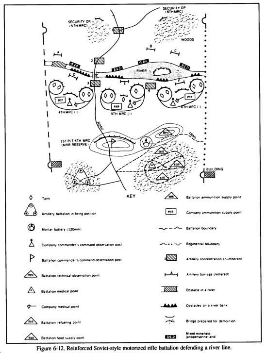 The company team will probably encounter numerous obstacles as it maneuvers across the battlefield. Soviet-style doctrine calls for the extensive use of minefields and other obstacles in their defense. Regardless of the type of obstacle employed, the purpose is the same: to canalize the attacker, to impede or stop the attacker's movement, or to force the attacker to expose a flank or other vulnerable area to enemy fire. To counter the enemy's use of obstacles, the company team must develop and practice breaching drills until they become second nature. The application of these drills, either as part of a battalion task force breaching operation or as an independent operation, will enable the company team to successfully breach enemy obstacles.
