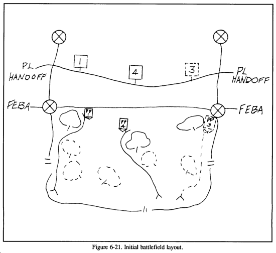 As noted earlier, terrain management becomes especially important because of possible requirements to plan space for additional artillery batteries and their support assets. Coordination with the stationary brigade's S3 will be especially important to ensure that the artillery will be able to position itself properly to support the attack.