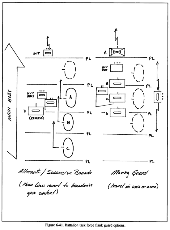 - Support team. Normally, this is the lead platoon, which is a tank platoon. It will probably make the initial contact and must be capable of laying down a base of fire for the other forces.