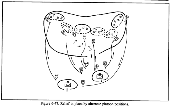 - Every form of normal activity in the AO must be maintained during the relief. The incoming unit should assume the normal pattern of harassing and interdicting fires, patrols, communications traffic and movement previously employed by the outgoing unit.