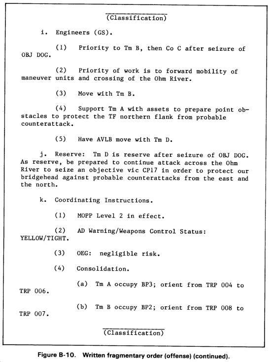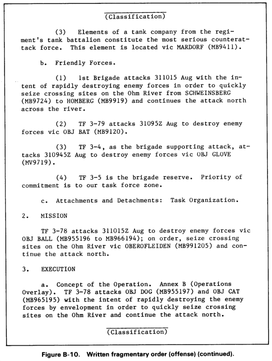 NOTE: Because of the dynamic nature of the battlefield, the task force OPORD may be written initially in one copy and given orally.