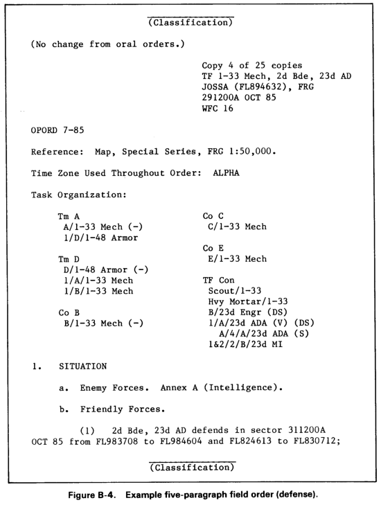 B-16. FIVE-PARAGRAPH FIELD ORDER
